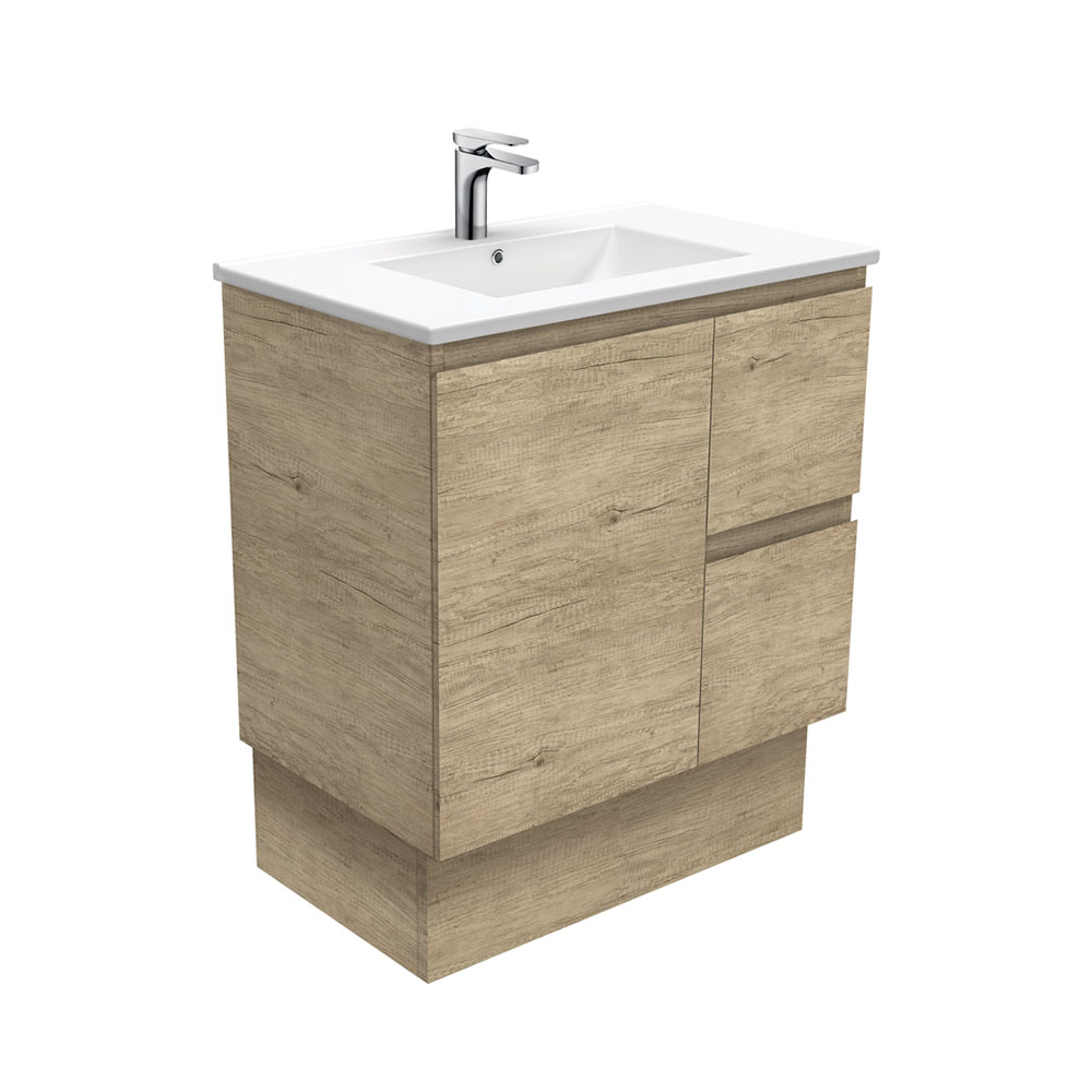 Dolce Edge Scandi Oak 900mm Vanity on Kickboard with ceramic moulded basin and left or right drawers